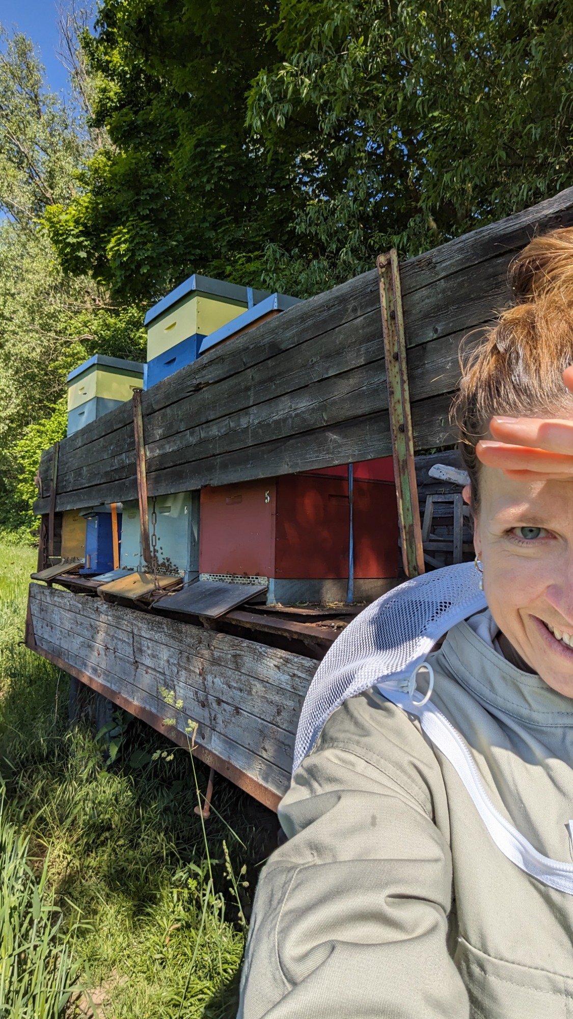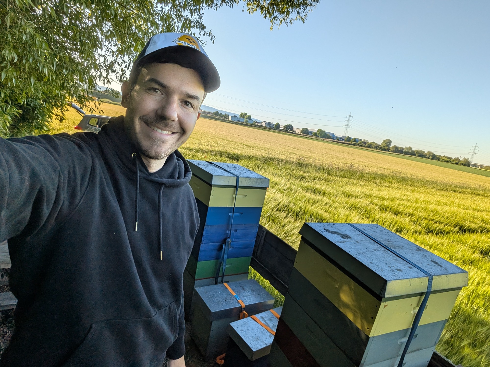 Durchsicht der Bienenvölker am Feld in Mannheim-Friedrichsfeld