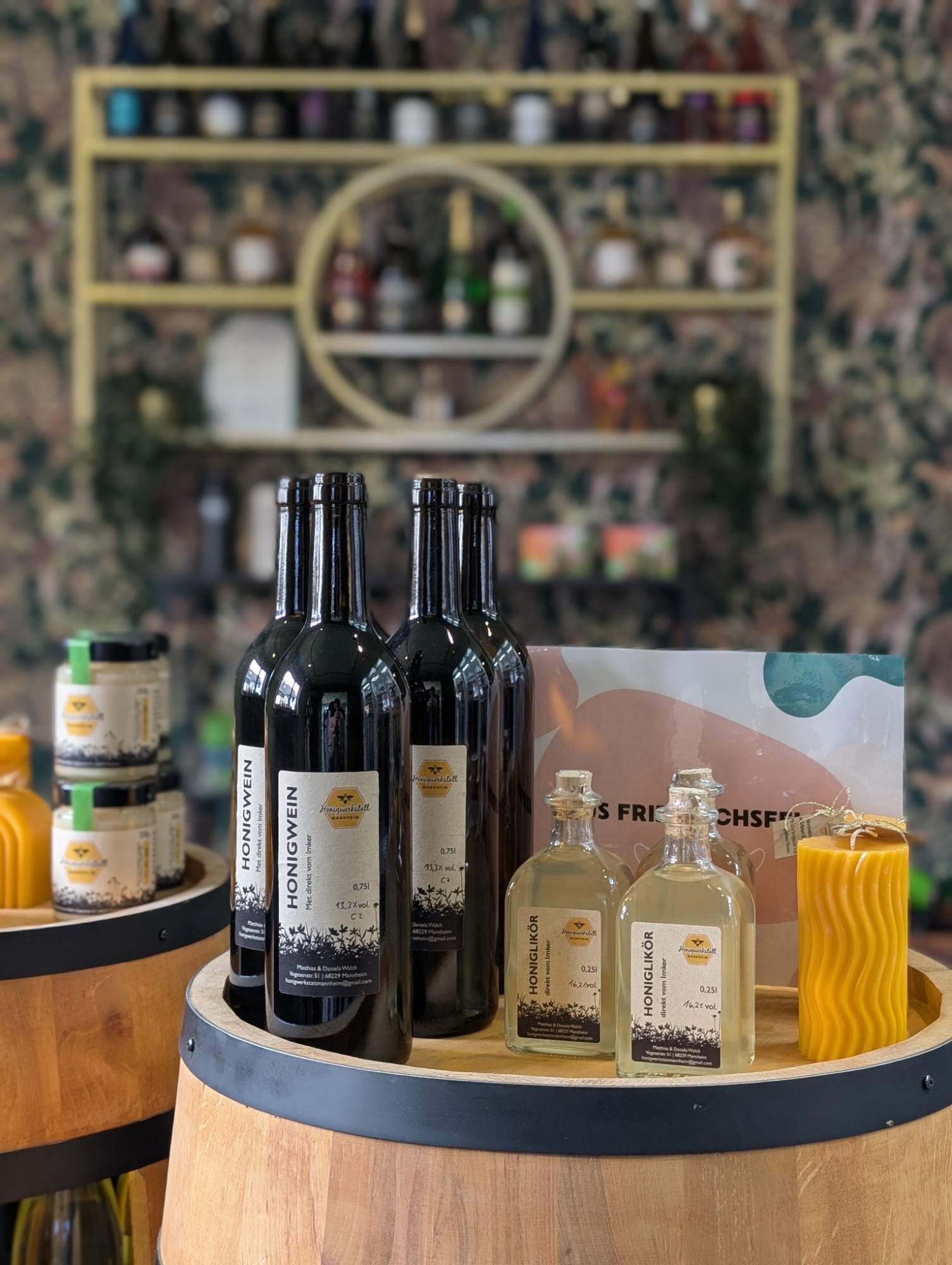 Honig, Bienenwachskerze, Likör und Wein aus der Honigwerkstatt Mannheim